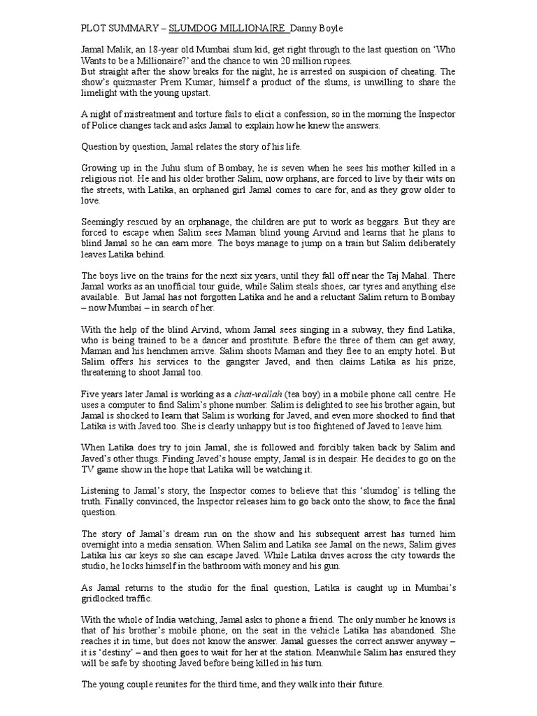 A modern alternative to sparknotes and cliffsnotes since 2008, q&a is often sold as slumdog millionaire, though the novel has several major plot and character differences from the movie. After coming within one question of winning a fortune on a game show, an uneducated young slumdog is accused of cheating and arrested. Slumdog millionaire has the goods to bust out as a scrappy contender in the oscar race. Watch trailers & learn more. James rocchi, common sense media.